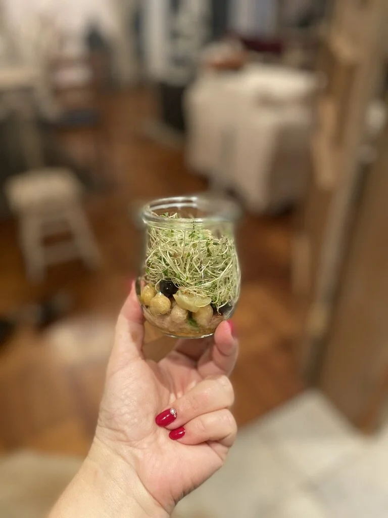 една шепа кълнове, ако нямате, нарязана на тънки ивички зелена салата